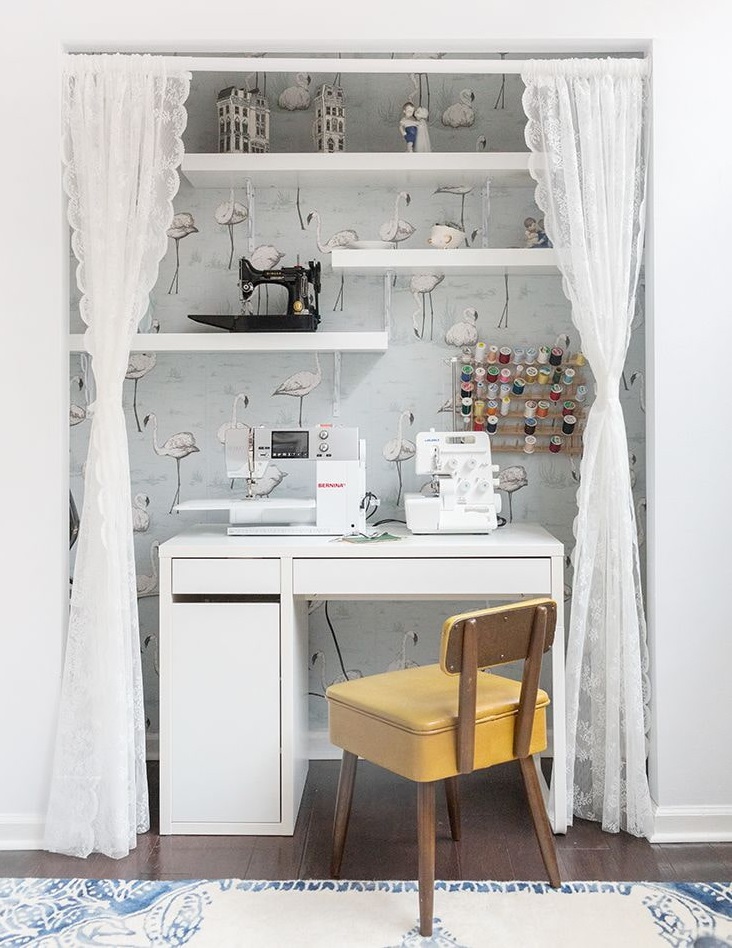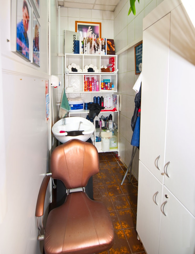 Wenn jemand von zu Hause aus arbeitet und Kunden empfängt, zum Beispiel einen Friseur oder eine Kosmetikerin, können Sie ein rundum gemütliches Büro einrichten, einen Spiegel, einen Werkzeugschrank, ein Waschbecken und einen Kosmetikstuhl dort platzieren.