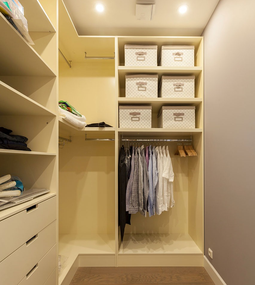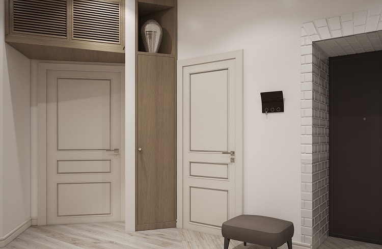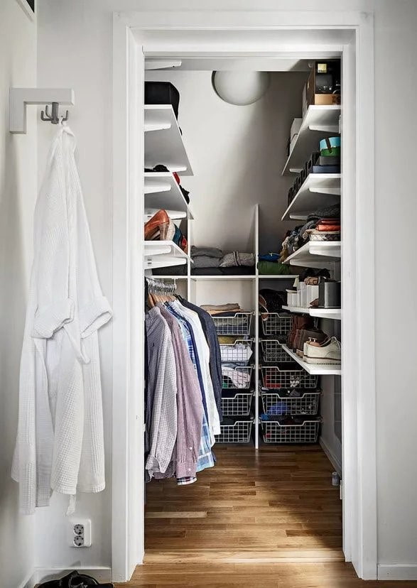 - Im Flur sind meistens schon Vorratskammern vorhanden, in denen Sie Oberbekleidung, Schuhe, die gerade nicht benutzt werden, aufbewahren können. In einer kleinen Wohnung im Flur können Sie aufgrund der Speisekammer ein Ankleidezimmer ausstatten.