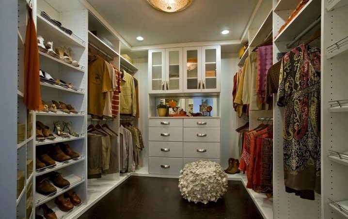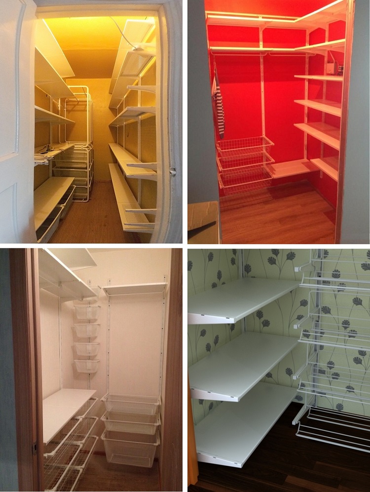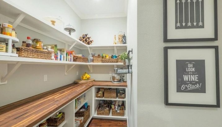 Trotz der Tatsache, dass Sie in der Speisekammer jede Ecke nach Belieben ausstatten können, sind diese Räume meistens so ausgestattet, dass es bequem ist, Kleidung oder Lebensmittel dort aufzubewahren.