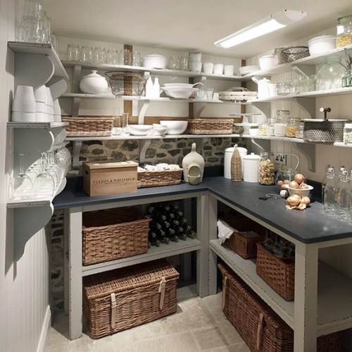 Bei der Ausstattung einer Speisekammer kommen verschiedene Materialien und Gestaltungsmöglichkeiten zum Einsatz - alles hängt davon ab, für welchen Zweck dieser Raum bestimmt ist.