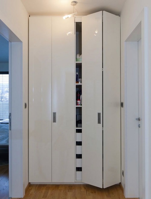 In kleinen Wohnungen werden sehr oft kleine Lagerräume gerettet, die sehr gut genutzt werden. In einer kleinen Küche ist es keine Seltenheit, dass nur ein kleiner Arbeitsbereich und ein winziger Tisch Platz haben. Aber in den daneben befindlichen Schrank passt perfekt ein Kühlschrank oder eine Waschmaschine, die nicht in Küche oder Bad passt.