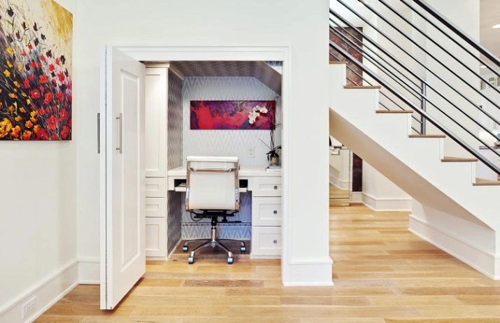 Eine geräumige, praktische Speisekammer ermöglicht es Ihnen, dort sogar einen Mini-Workshop zu organisieren, in dem es durchaus möglich ist, ein Gerät zur Herstellung bestimmter Teile zu arrangieren. Der Platz im Keller des Hauses oder unter der Treppe ist ideal für einen Schrank zum Aufbewahren von Rädern. In den Schränken kann alles eingerichtet werden, was man möchte, Hauptsache, die Abmessungen lassen es zu.
