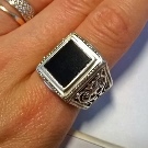 - Eine andere häufige Form des Rings ist Rechteck. Meistens wird solcher Schmuck durch kleine Edelsteine ergänzt. Diese Siegel sind bei jungen Leuten beliebt.