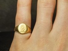 So, Antike ein solches Ornament wurde am kleinen Finger der Hand getragen und diente praktischen Zwecken, nämlich zum Versiegeln von Buchstaben. Dabei wurden meist das Familienwappen oder die Initialen des Trägers auf der Oberfläche des Siegels abgebildet, damit der Empfänger des Briefes weiß, von wem die Nachricht stammt.