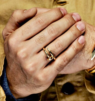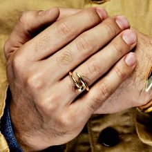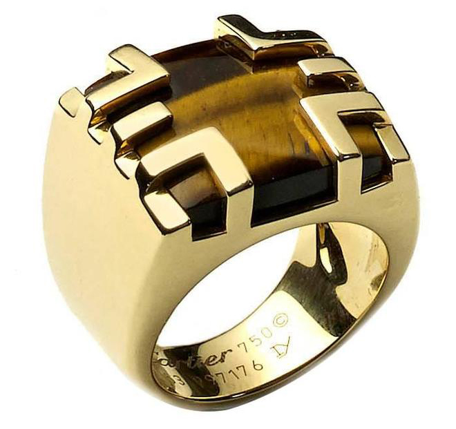 - Cartier - Die französische Marke produziert einzigartigen Schmuck mit erstaunlicher Designleistung. Cartier kann Herrenringe in Form von ineinander verschlungenen Schlangen, gedrehten Nägeln und mit Edelsteineinlagen anbieten.