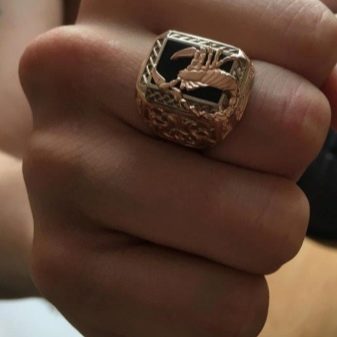Moderne Herrenringe werden aus verschiedenen Metallen hergestellt, aber schönes und formbares Gold ist seit vielen Jahren das beliebteste. Am häufigsten gibt es Produkte aus solchen Legierungen - 10 kt, 14 kt, 18 kt... Je mehr Karat im Zubehör enthalten sind, desto teurer wird es. Gold kann in Schattierungen variieren. Heute finden Sie in den Regalen von Juweliergeschäften Herrenringe aus den folgenden Metallarten.