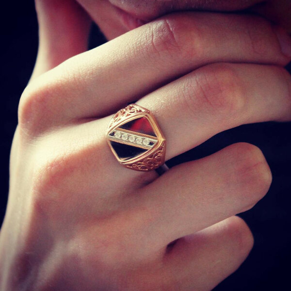 Oft werden Goldringe für Herren durch verschiedene Einsätze in Form von Steinen ergänzt: