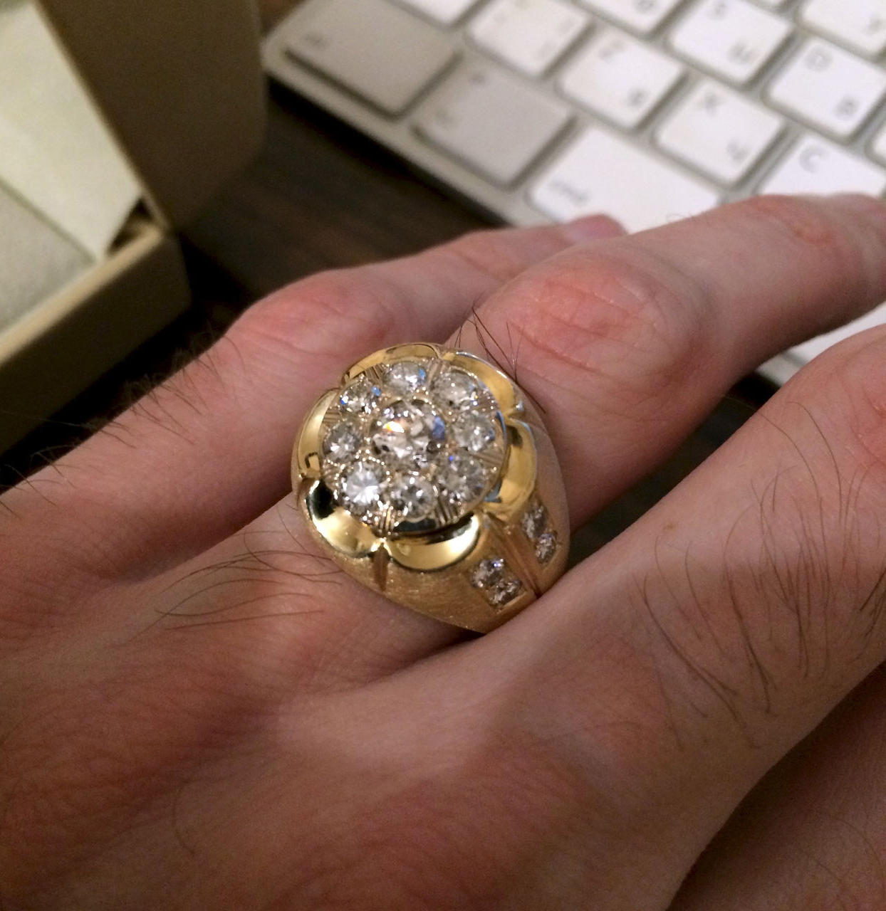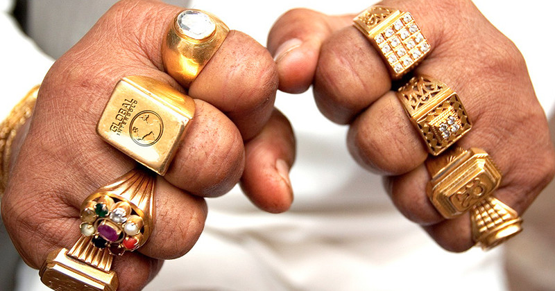 - Ringe... Meistens sind sie mit Edelsteinen verziert und bestehen aus 585er Gold. Sie haben ein beeindruckendes Erscheinungsbild. Sie können massiv und schwer erscheinen. Sie fallen auf und ziehen viel Aufmerksamkeit auf sich.