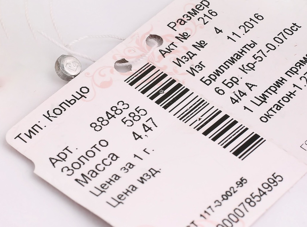 - Beim Kauf eines Goldrings muss der Käufer diesen mitnehmen spezielles Etikett, auf dem alle wichtigen Informationen angewendet werden.