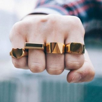 - Goldener Ring. Ein Mann, der Bescheidenheit und Schüchternheit nicht loswerden kann, sollte einen Rat kennen. Ein Typ wie er muss goldene Ringe am Zeigefinger tragen. Gold ermöglicht es Ihnen, dominante Eigenschaften in Ihrem Charakter zu entwickeln, die Ihnen helfen, Ihre Ziele für ein erfolgreiches und fröhliches Leben zu erreichen. Der Ring kann unterschiedlich sein: glatt, mit kleinen Steinen oder Diamanten.