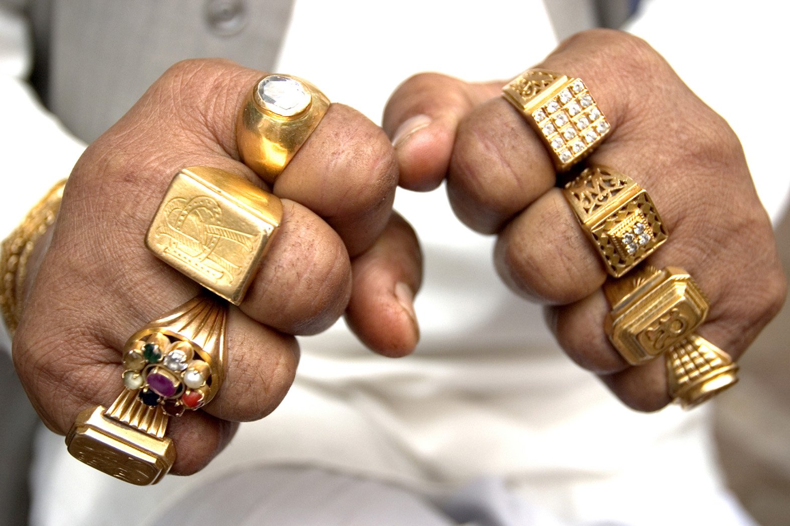 Wenn ein Vertreter des stärkeren Geschlechts Ringe an den Zeigefingern beider Hände trägt, kann er als eine Person angesehen werden, die nach der Spitze strebt... Solche Menschen versuchen mit allen Mitteln an ihr Ziel zu kommen – auch wenn sie barfuß auf Nägeln laufen müssen. Solche Männer sehen keine Hindernisse vor sich.