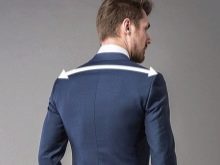 - Jetzt schauen wir uns die Linie der Schultern an. Es sollte nicht "falten", "hängen" oder sich wellenförmig falten - jedes dieser optischen Zeichen weist darauf hin, dass Sie die Jacke nicht in der richtigen Größe gewählt haben.