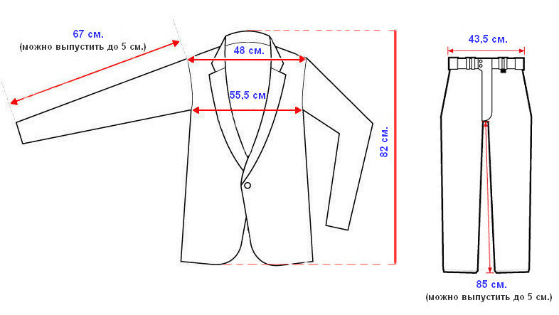 Es kommt oft vor, dass die Figur einer Person nicht ganz normal ist und eine Jacke in einer Größe zu ihm passt und eine Hose in einer anderen. Was ist in diesem Fall zu tun? Wählen Sie diese natürlich einzeln aus.