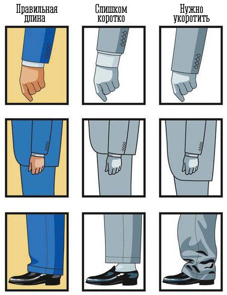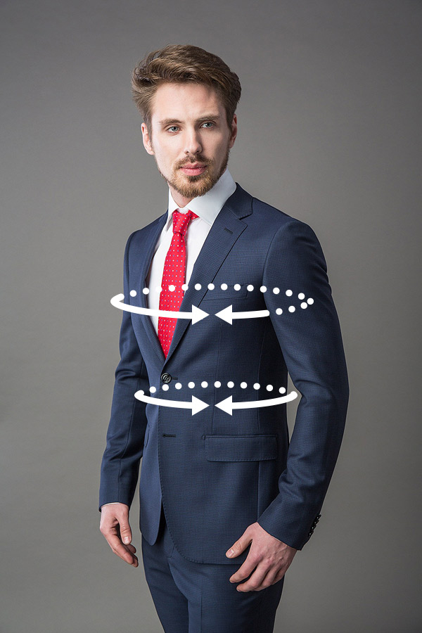 - Ein sehr wichtiger Parameter ist die Länge des Ärmels. Bei einer perfekt sitzenden Jacke lugt darunter ein Hemdsärmel hervor, ca. 1,5 cm.