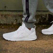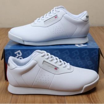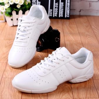 Helle Schuhe im Duett mit Kleidung im gleichen Farbschema wirken frisch und stylisch. Dies ist eine großartige Option für Indoor-Sportarten. Die Sneaker eignen sich für jeden Trainingsanzug, unabhängig von Farbe und Schnitt der Kleidung. Für ein solches Bild können Sie sowohl Ledersneaker als auch Modelle aus Textilien wählen.
