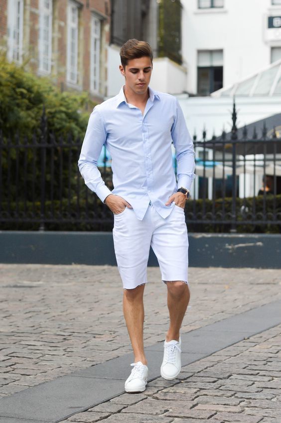 Fühlen Sie sich mutig? Entscheiden Sie sich für kurze Hosen. Dies ist ein praktischer, bequemer und modischer Look für jeden Tag.... Hitze ist bei heller Kleidung viel besser verträglich als bei dunkler Kleidung. Berücksichtigen Sie dies bei der Auswahl von Kleidung. Shorts aus verschiedenen Stoffen sehen toll zu Sneakers aus. Eine vielseitige Option sind Jeansshorts. Ergänzen Sie den Style mit T-Shirts oder T-Shirts.