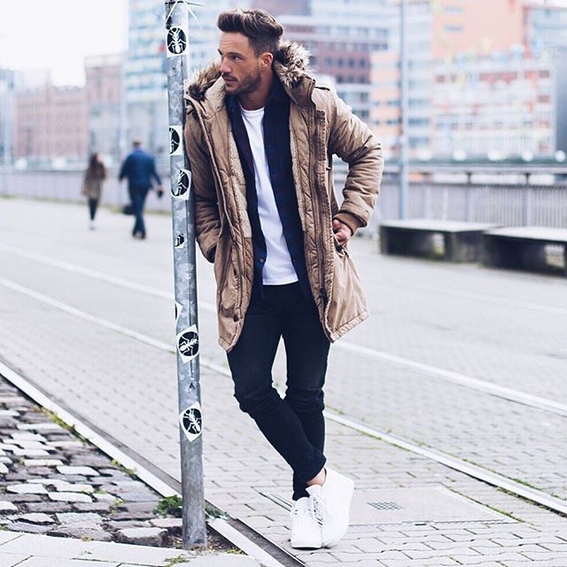 Isolierte Sneaker kann auch bei Minusgraden getragen werden. Sie sind für Männer unterschiedlichen Alters geeignet. Zu einem Wintermantel oder einer Daunenjacke sehen Schuhe stylisch aus. Accessoires wie Strickmützen oder Mützen nicht vergessen.