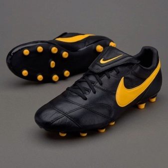 - Der Fußballschuh, auch Boot genannt, hat eine Sohle mit Spikes. Die Anzahl dieser Elemente sowie ihre Höhe und Dicke können variieren. Fußball-Sneaker sollten nach der Art der Oberfläche ausgewählt werden. Zum Verkauf stehen Optionen zum Spielen auf Natur- oder Kunstrasen, Erde, Kunststoff, Schnee und anderen Oberflächen.