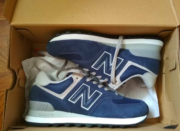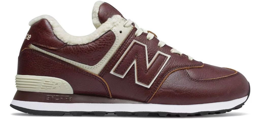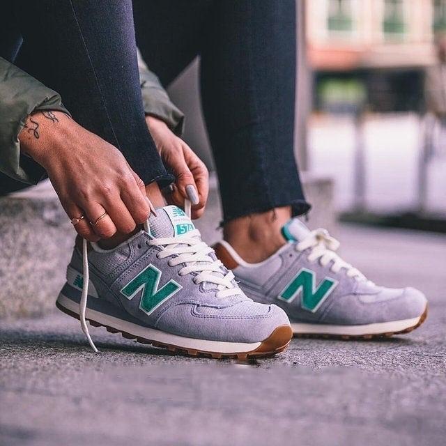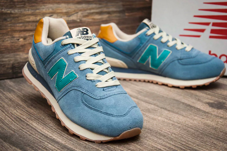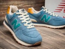 - 574. Dämpfungssohle, Fersenverschluss. Sportschuhe sind in Wildleder oder Leder (für nasses Wetter) erhältlich. Produziert in asiatischen Ländern, Großbritannien, USA. Auf der offiziellen Website können Sie ein solches Modell bestellen, Farben und Stickereien auswählen.