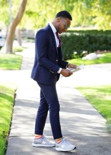 Es ist erlaubt, solche Sneaker zu klassischen Anzügen zu tragen, denn lässige Elemente sind in den meisten modernen Modellen vorgesehen.