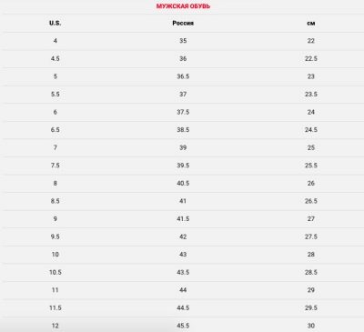 Viele Handelsplattformen, die importierte Schuhe verkaufen, verwenden nicht nur die russische, sondern auch die amerikanische Skala, um die Größe von Turnschuhen zu messen. Der Online-Shop New Balance verwendet beispielsweise eine solche Regel.