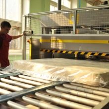 Beim Pressen werden Kokosflocken von zahlreichen Nadeln durchbohrt, die sie verbinden und verwickeln. Die resultierende Platte ist steifer, aber weniger haltbar als Latex. Trotz der Tatsache, dass diese Methode umweltfreundlicher ist, verliert das fertige Produkt schnell seine Leistungsmerkmale, bröckelt und staubt.
