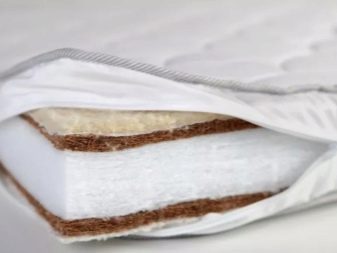 Federlose Matratzen erzeugen weniger harte Oberflächen. Sie bestehen aus mehreren Füllschichten: entweder nur aus Kokos-Kokos oder aus verschiedenen Schichten, darunter Latex oder Polyurethanschaum. Modelle aus reiner Kokosnuss werden am häufigsten auf Empfehlung eines Spezialisten gekauft, um Probleme mit Nacken und Wirbelsäule zu neutralisieren. Die Härte von Kokos-Latex-Matratzen variiert je nach Dicke und Anzahl der Schichten.