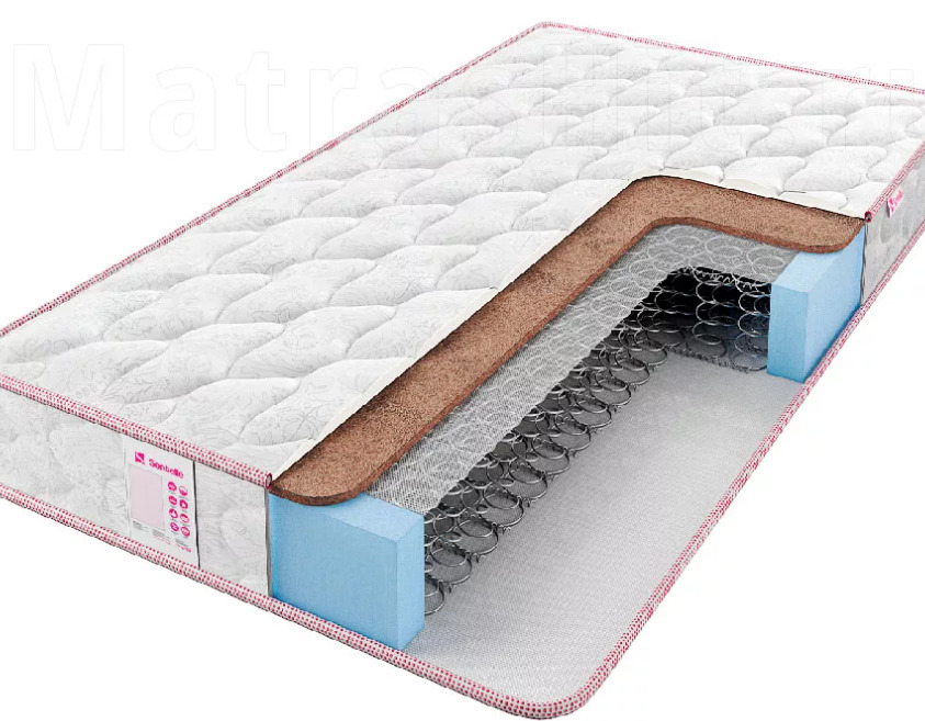 Federstrukturen sind mit abhängigen oder unabhängigen Blöcken ausgestattet. Bei diesen stärkeren und widerstandsfähigeren Modellen werden die Blöcke mit dünnen Kokosplatten kombiniert, die 10 bis 30 Millimeter dick sind. Abhängige Federn verleihen der Matratze zusätzliche Steifigkeit und unterstützen die Wirbelsäule so gut wie möglich, während unabhängige Federn sich individuell an den menschlichen Körper anpassen. Die individuellen Eigenschaften jedes Modells werden durch die Kombination der Dicke der Kokosschicht und der Anzahl der Federn pro Block pro Quadratmeter erreicht.
