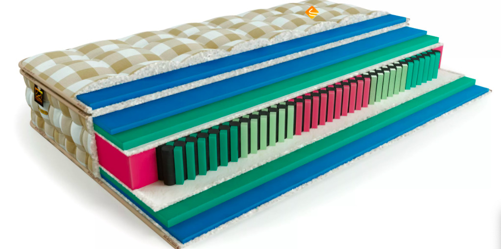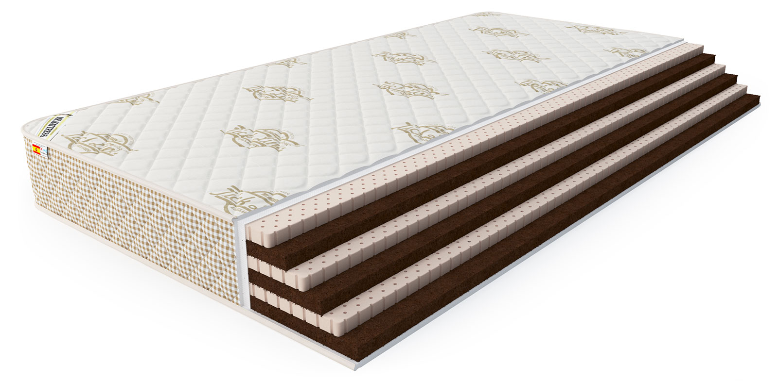 Eine großartige Option für Kinder im Alter von 10-18 Jahren. Es besteht aus einer Schicht Sojaschaum Mousse Neropur, Baumwoll-Thermofilz, Leinen und einer Verstärkungsbox drumherum. In der Mitte der Matratze befindet sich ein spezieller Federblock mit sieben Stützen, die jeweils separat auf jede Körperpartie wirken. Die Matratze wird mit einem abnehmbaren Bezug aus natürlicher Baumwolle geliefert. Der Preis beträgt 22.025 Rubel.
