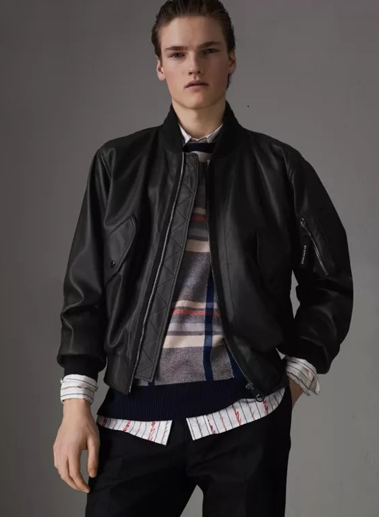 Ein weiteres Merkmal von Burberry Jacken ist die Verwendung des Vintage-Checks in ihrem Designbestehend aus schwarzen, roten und weißen Streifen auf sandbeigem Grund. In der Farbpalette der Herrenjacken, die die Marke 2020 präsentiert, Es herrschen reine homogene Farbtöne vor - Hellgrau, Tomate, Sumpfgrün, Ultramarin, Goldbeige und Schwarz.