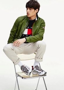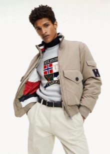 Heute sind verkürzte Versionen von Herrenjacken in Mode. Jacken, die "Pilot" oder "Bomber" genannt werden, ähneln der Kleidung von Piloten. Diese beliebten Jackenmodelle haben eine klassische oder eher lockere Silhouette mit breiten Schultern und einem hohen Kragen, mit Gummizug am unteren Rand des Produkts und an den Ärmeln und einem Reißverschluss. Die Länge der Bomberjacke reicht bis zu den Oberschenkeln. Solche Jacken können einfarbig sein oder verschiedene Streifen, Streifen und Logos aufweisen, im letzteren Fall ist solche Kleidung eher sportlich.