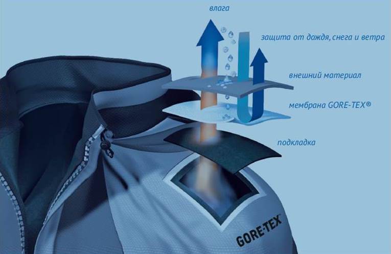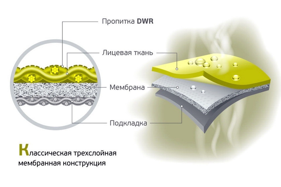 Das am häufigsten verwendete Material ist Gore-Tex oder DWR – diese Stoffe bestehen aus mehreren Membranen und bieten einen erhöhten Schutz.