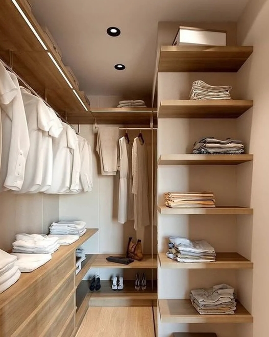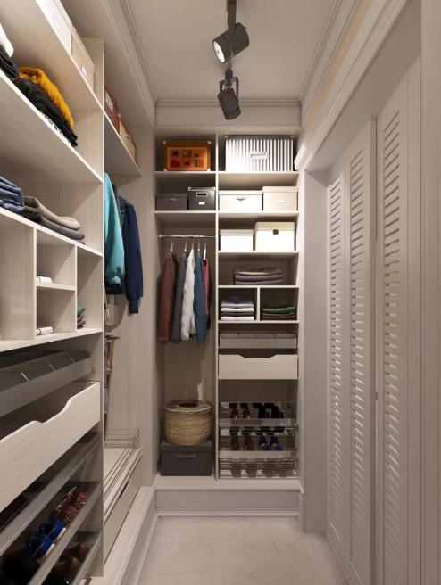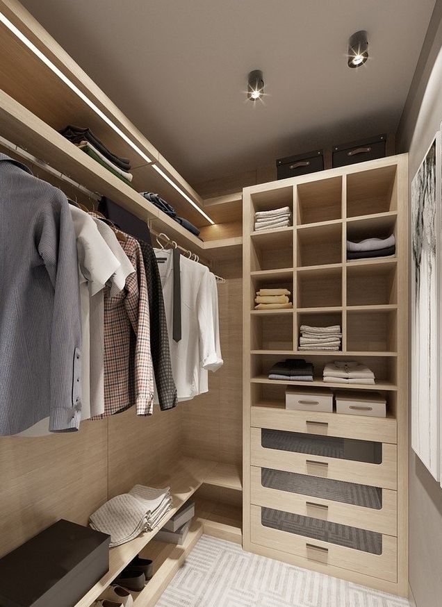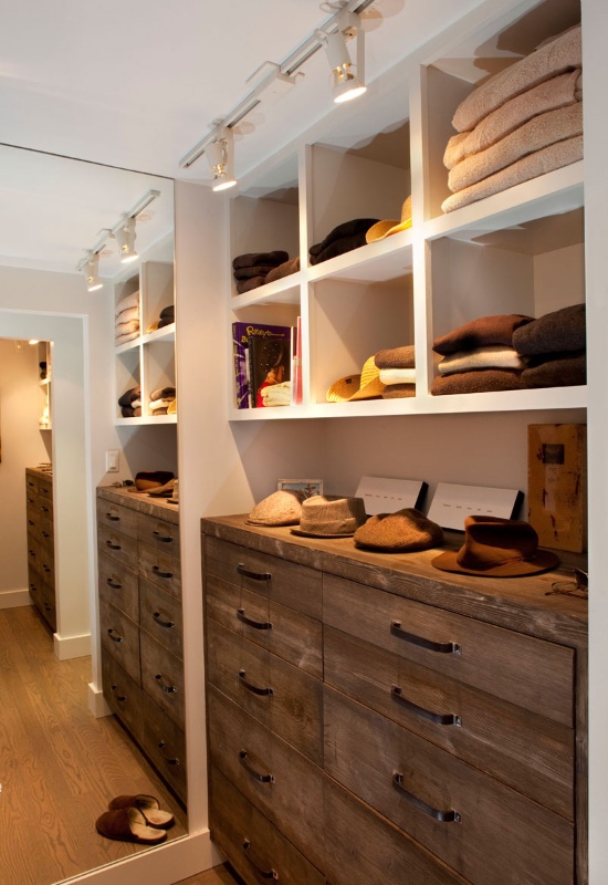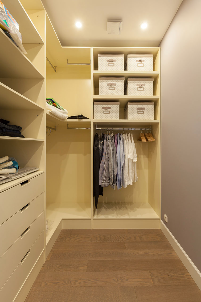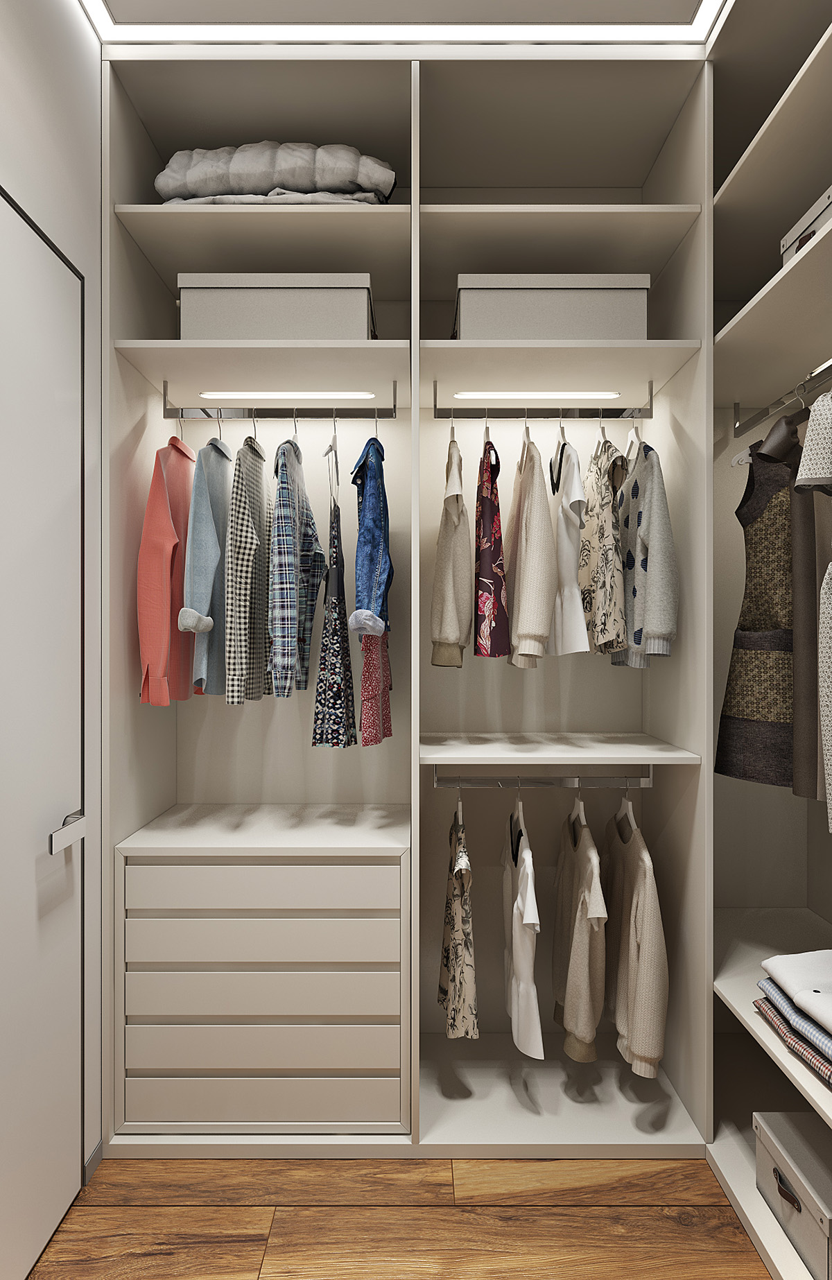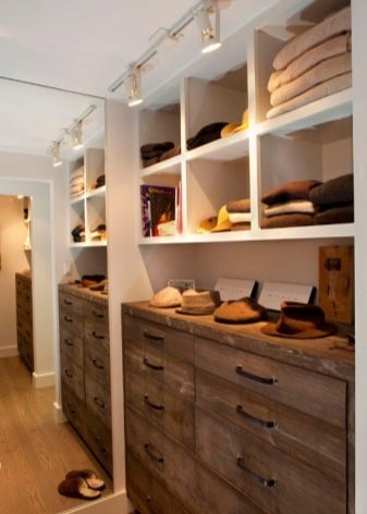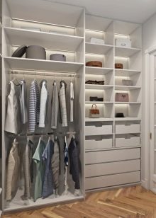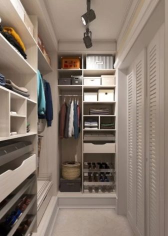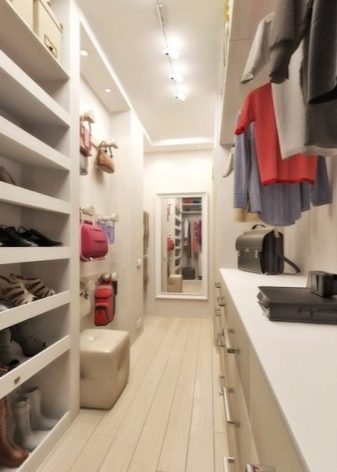 Bei der Einrichtung eines Raumes zum Aufbewahren von Kleidung und Schuhen ist es auch wichtig, darauf zu achten, dass er gut beleuchtet ist.