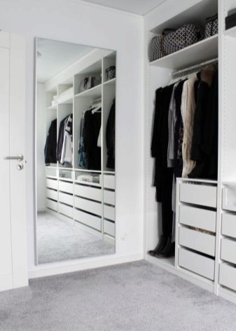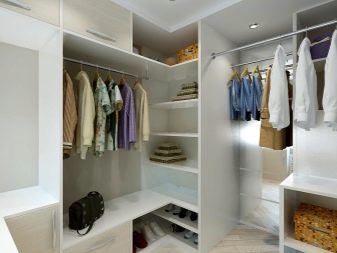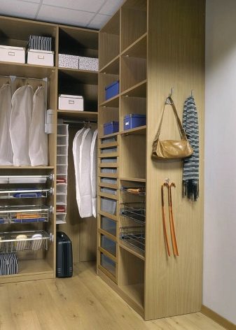 Um ein Ankleidezimmer auszustatten, werden verschiedene nützliche Ergänzungen verwendet.