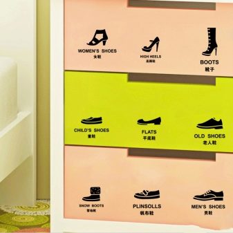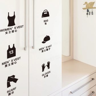 - Aufkleber. Um verschiedene Schachteln zu dekorieren, können Sie spezielle Aufkleber mit Aufschriften oder Fotos verwenden. In diesem Fall versteht der Nutzer sofort, was wo gespeichert ist. Sie können solche Aufkleber entweder in einem normalen Geschäft oder im Internet kaufen oder selbst aus Schrott herstellen.