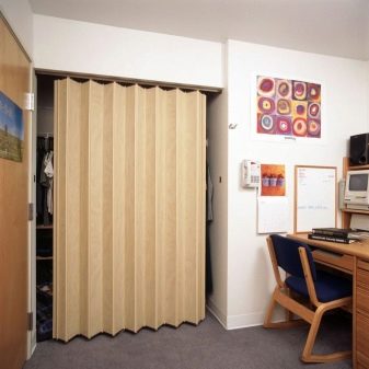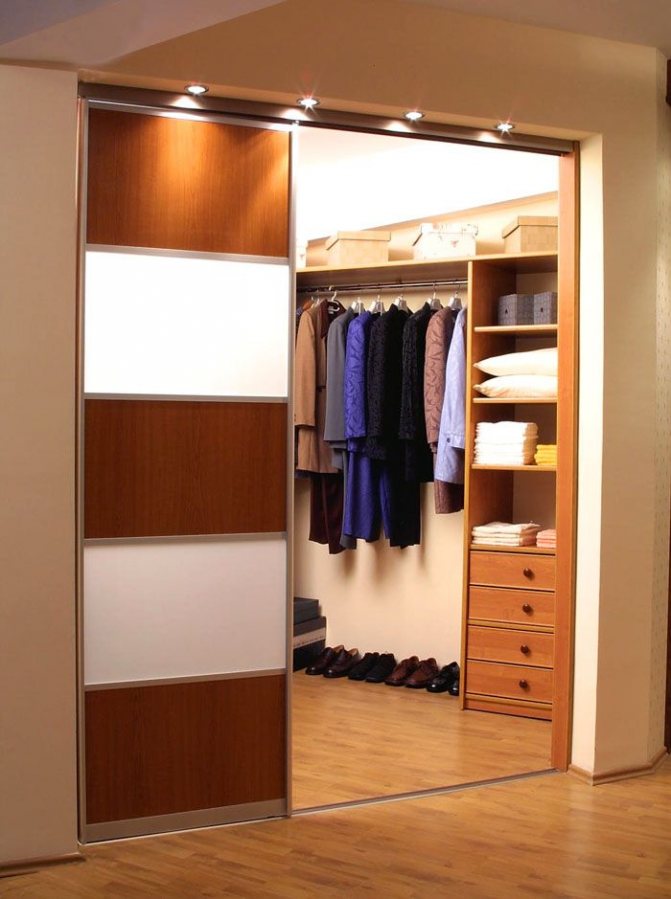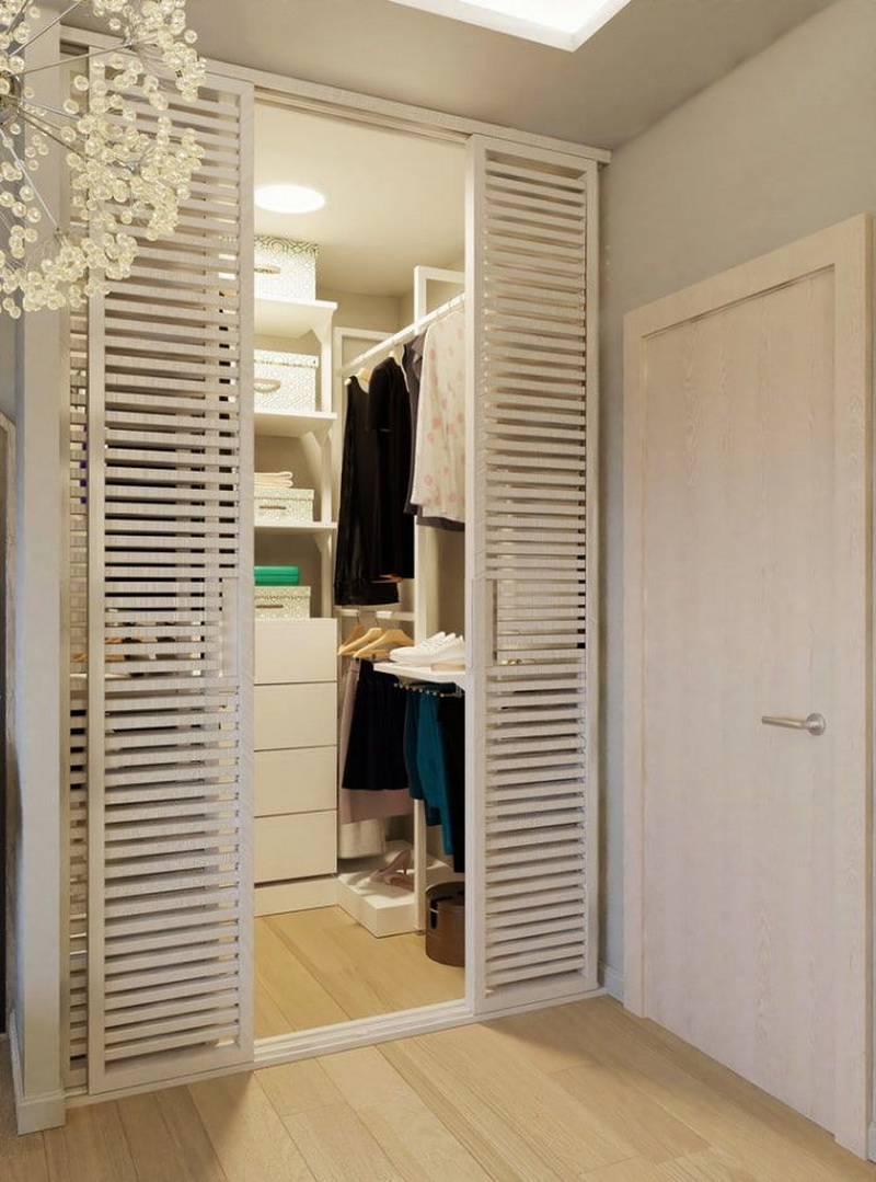Bei der Einrichtung eines Ankleidezimmers in einem kleinen Raum spielt nicht nur der innere Inhalt, sondern auch die Wahl der Tür eine wichtige Rolle.