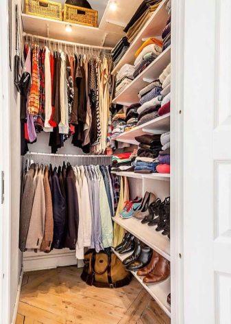 In einer kleinen Wohnung kann sich ein Ankleideraum zum Aufbewahren von Saison- und Alltagsgegenständen in einer gewöhnlichen Speisekammer befinden. Damit alle Kleidungsstücke und Schuhe Platz finden, müssen Sie den Raum richtig organisieren.