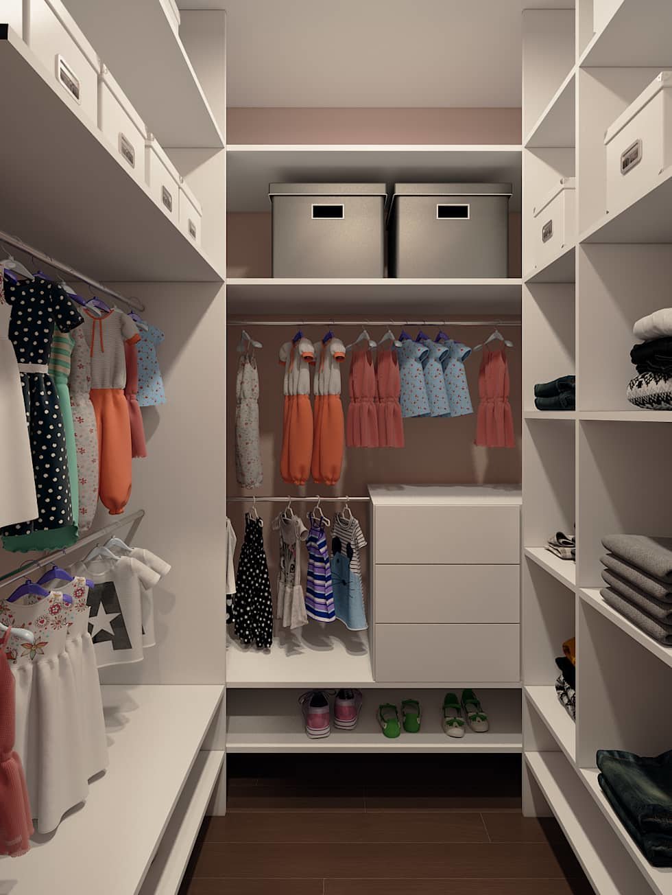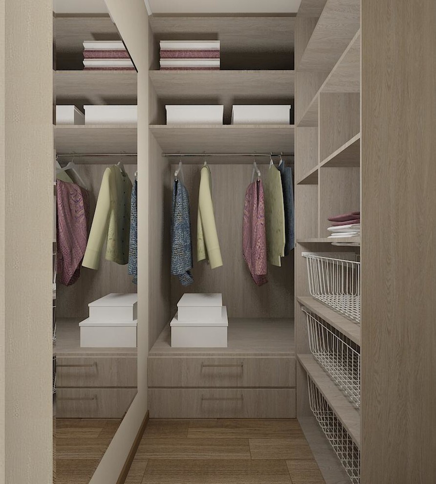 Ein so einfaches Layout ermöglicht es Ihnen, den freien Raum richtig aufzuteilen und Platz im Kleiderschrank für alle notwendigen Dinge zuzuweisen.