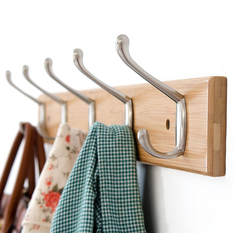 - Haken. Sie werden horizontal oder vertikal an der Wand montiert und dienen zur Aufbewahrung von Taschen, Schals, Krawatten oder Mützen. Sie können sowohl Standardhaken als auch interessantere Designeraccessoires verwenden, um den Raum zu dekorieren. Passende Produkte können Sie in Online-Shops kaufen.