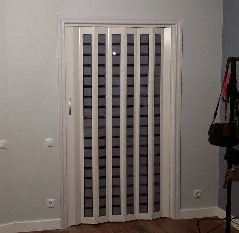 Eine solche Tür sollte nur installiert werden, wenn im Flur oder Flur genügend Freiraum vorhanden ist.... Um jeden Meter Freiraum optimal zu nutzen, können an der Türoberfläche Haken zur Aufbewahrung von Taschen und diversem Zubehör angebracht werden. Sie können auch zur vorübergehenden Aufbewahrung von Oberbekleidung verwendet werden.