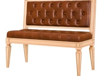 - Echtleder- oder Kunstlederpolster sehen solide aus. Es hat eine gute Haltbarkeit, nimmt keine Feuchtigkeit auf und lässt sich leicht von jeder Art von Schmutz entfernen. Ledermodelle sind teuer, und wenn das Budget begrenzt ist, können Sie sich Öko-Lederbänke genauer ansehen - sie sind billiger, aber die Qualität ist schlechter.