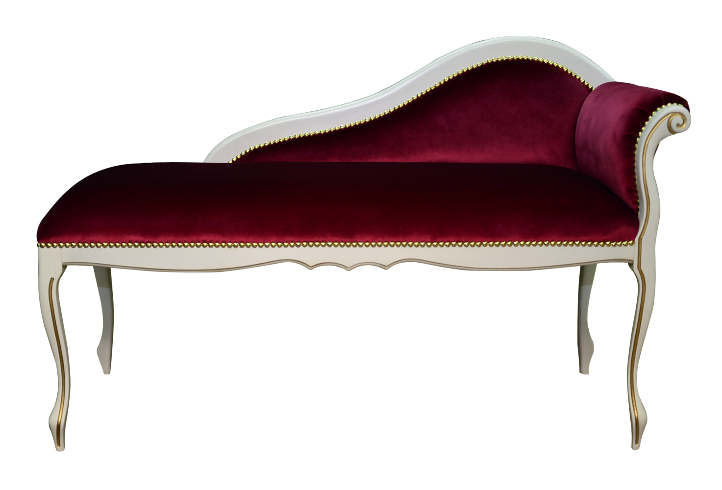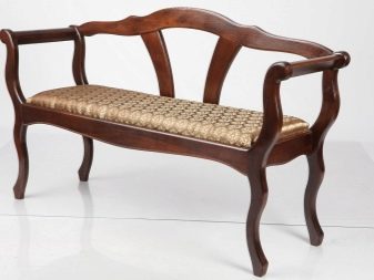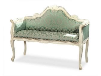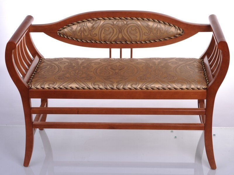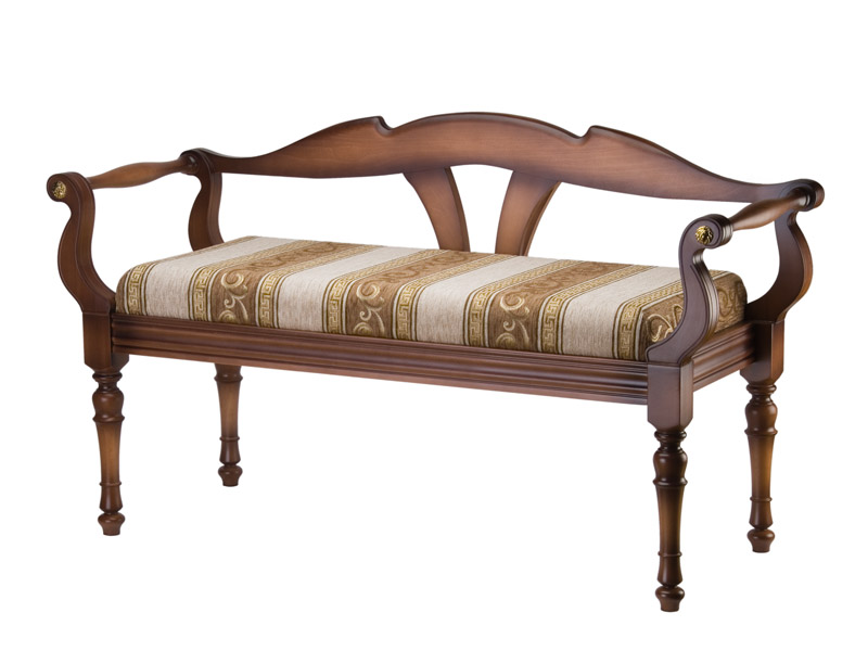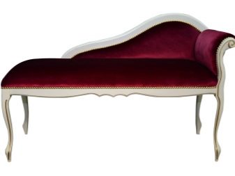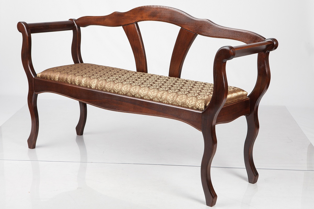 - Hier die "Klassiker": eine kleine Holzbank mit einer Rückenlehne und einer Armlehne. Polstermöbel sind mit Kuppler, Vergoldung verziert.