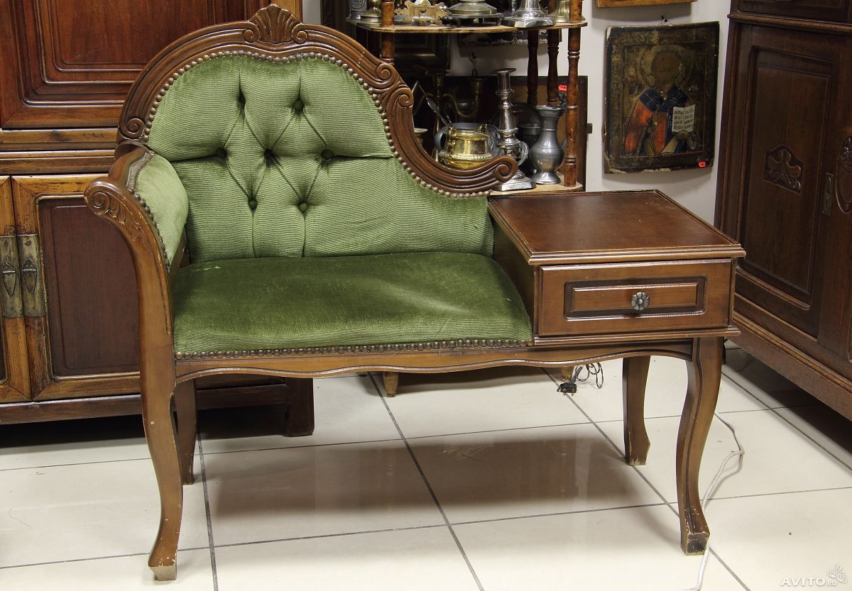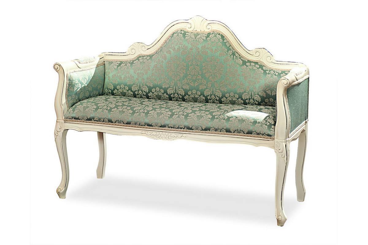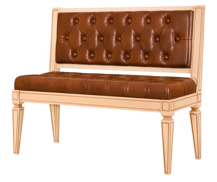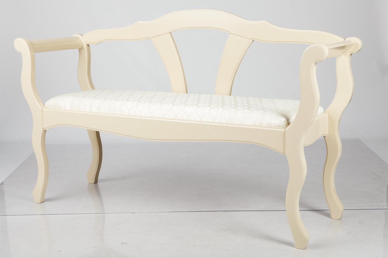 - Hier die "Klassiker": eine kleine Holzbank mit einer Rückenlehne und einer Armlehne. Polstermöbel sind mit Kuppler, Vergoldung verziert.