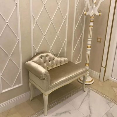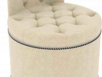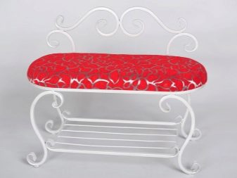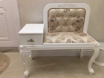 - Runde Polsterbänke mit gepolsterter Sitzfläche. Diese Modelle sind schlank und kompakt und bieten Platz für 1 Person. Sie können zwischen einer normalen statischen Bank oder einer funktionalen Option wählen - Möbel mit einer Klappplatte. Darunter befindet sich ein kleiner Stauraum, in dem Sie Schuhe und Oberbekleidung außerhalb der Saison aufbewahren können.