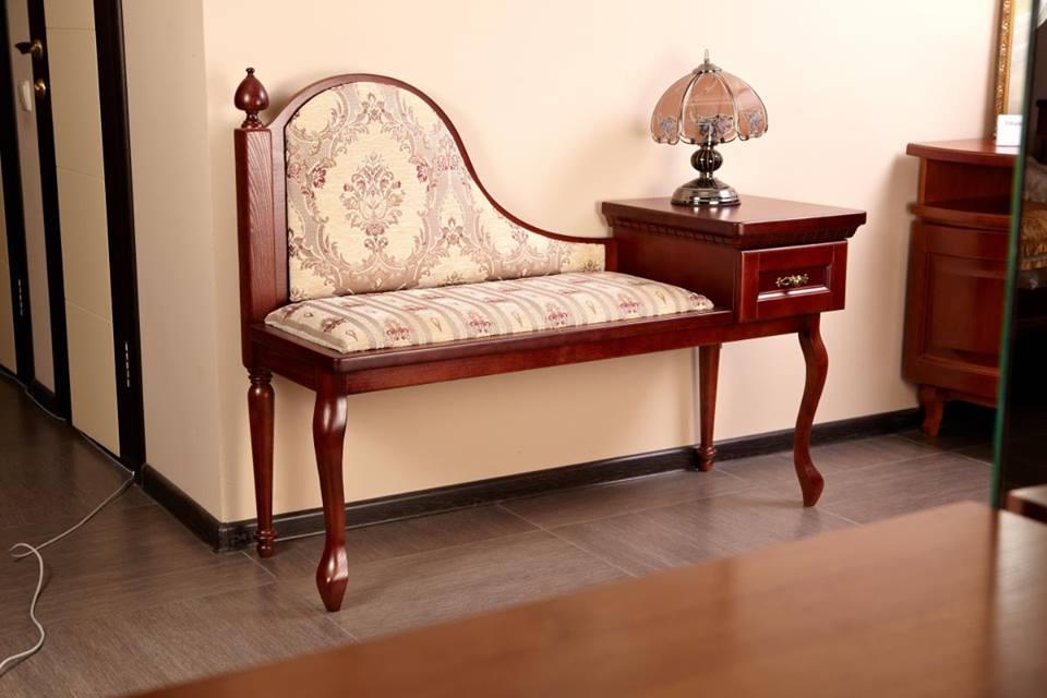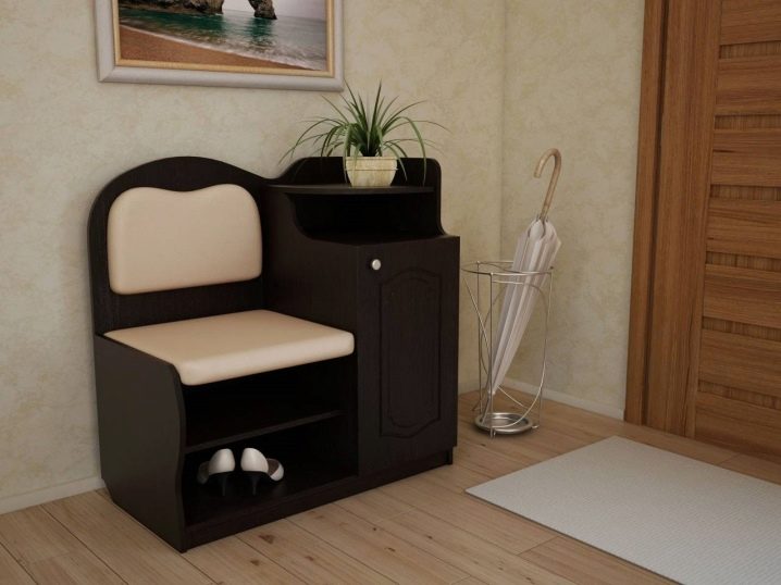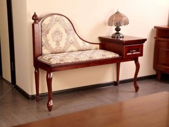 - Bank mit Schublade oder Schrank. Solche Möbel sind am bequemsten zu verwenden: Auf den Bordstein können Sie ein Telefon, Schlüssel und eine Blumenvase stellen. Die Schublade wird zu einem bequemen Ort, um Schuhe oder Haushaltsgegenstände aufzubewahren.