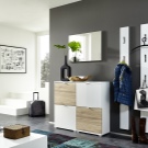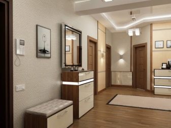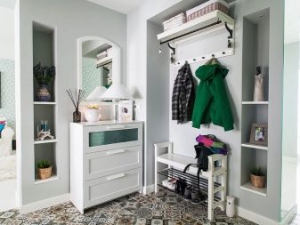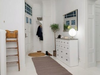 Daher können Möbel im Flur heterogen sein, und Sie müssen nicht nach einer Kommode suchen, die die gleiche Farbe wie ein Kleiderschrank oder ein Regal unter einem Spiegel hat.