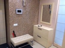 - Eine ausgezeichnete lineare Anordnung von Möbeln - eine einfache weiße Kommode, neben einem Schuhregal mit Sitz (sogar ein kleines Sofa) und dann ein Spiegelschrank. Behaglichkeit ist von den ersten Schritten ins Haus an zu spüren.