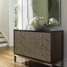 - Eine originelle Kommode aus Holz, die in einem nicht kleinsten Flur gut aussehen wird. Praktisch zum Aufbewahren verschiedener Kleinigkeiten, die in Fächern angeordnet werden sollten.