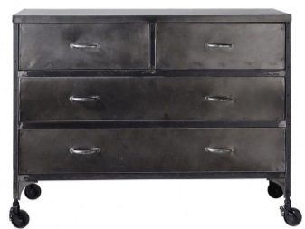 Es ist modisch, praktisch, funktional. Für einen Büroraum natürlich eine optimalere Option, aber nicht nur. In einer Wohnung, die der Loft-Ästhetik folgt, ist eine solche Kommode sehr angemessen. Oder es wird zum Beispiel ein Modell mit geschmiedeten Elementen sein, das auch im Interieur elegant und überzeugend wirken kann.