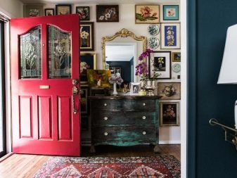 - Retro. Sie können die sowjetische Kommode in ausdrucksstarkem Rot neu streichen und das stilvolle Ding wird zum Akzent des Flurs. Sie können eine schwarze sperrige Kommode an der Hauptwand installieren, einen nicht weniger ausdrucksstarken Kerzenständer darauf stellen und den Raum veredeln.